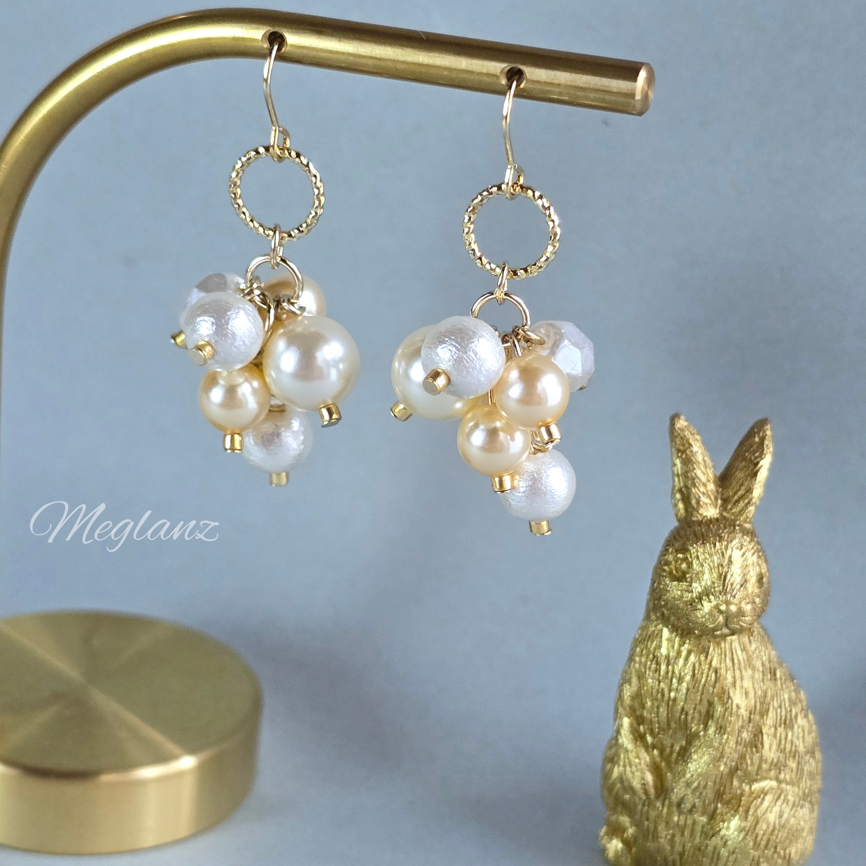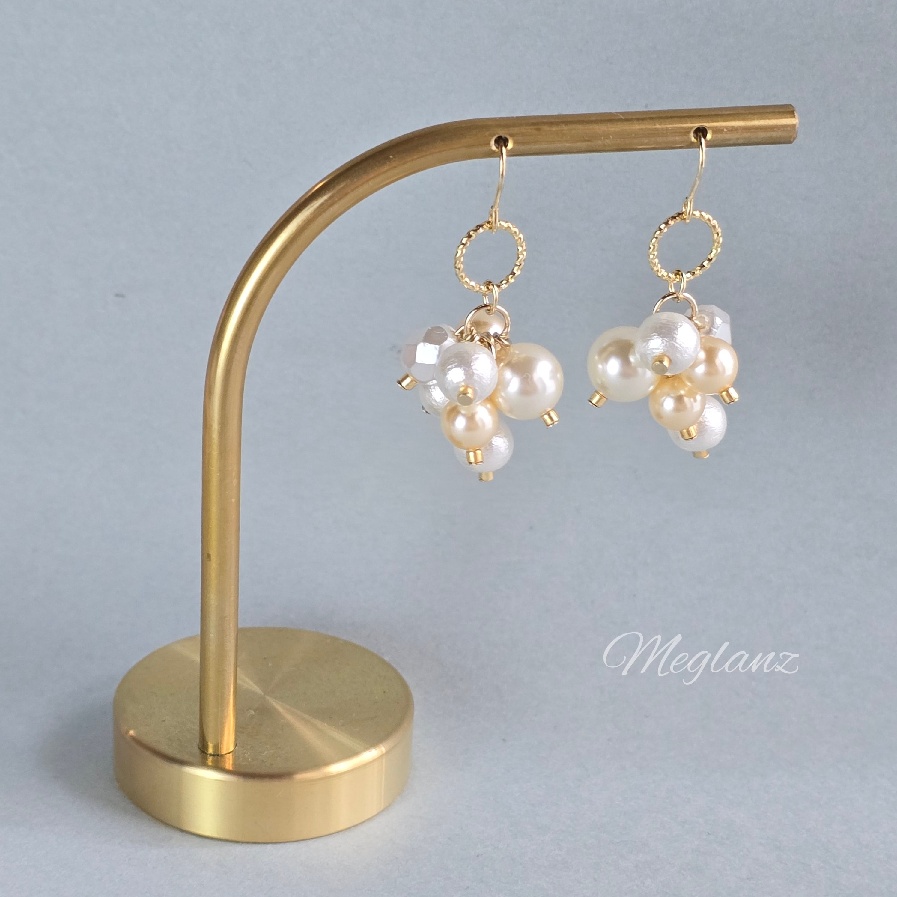 一粒一粒のパーツに贅沢な輝きがあり、耳元を華やかに彩り、女性らしい雰囲気を引き立てます。