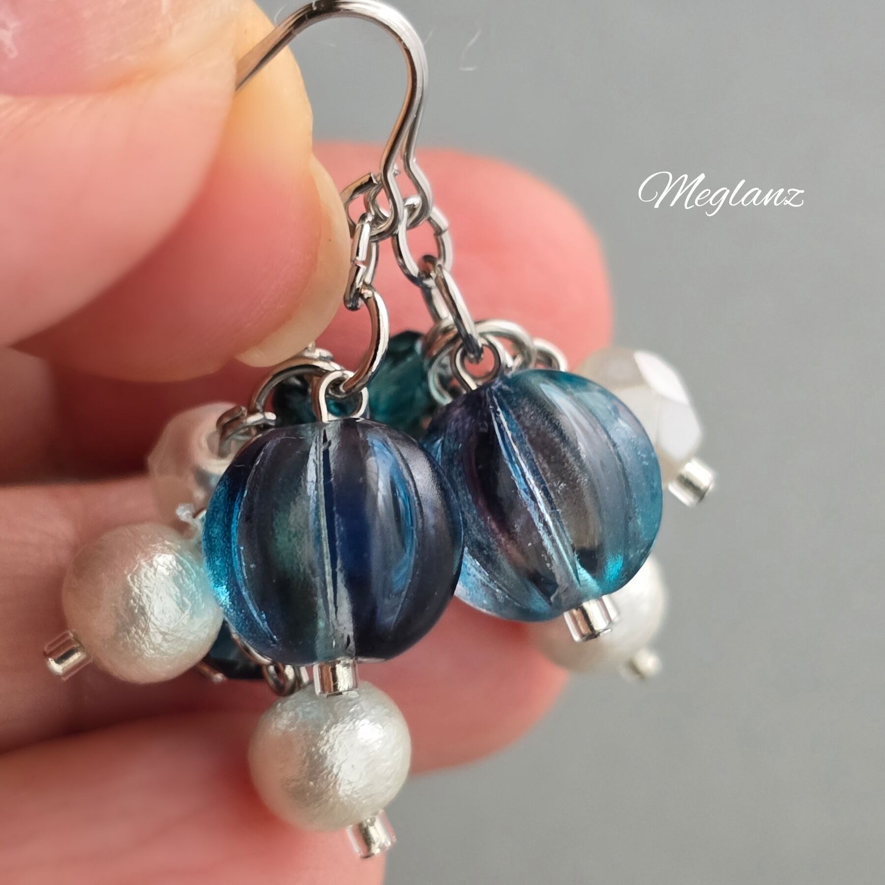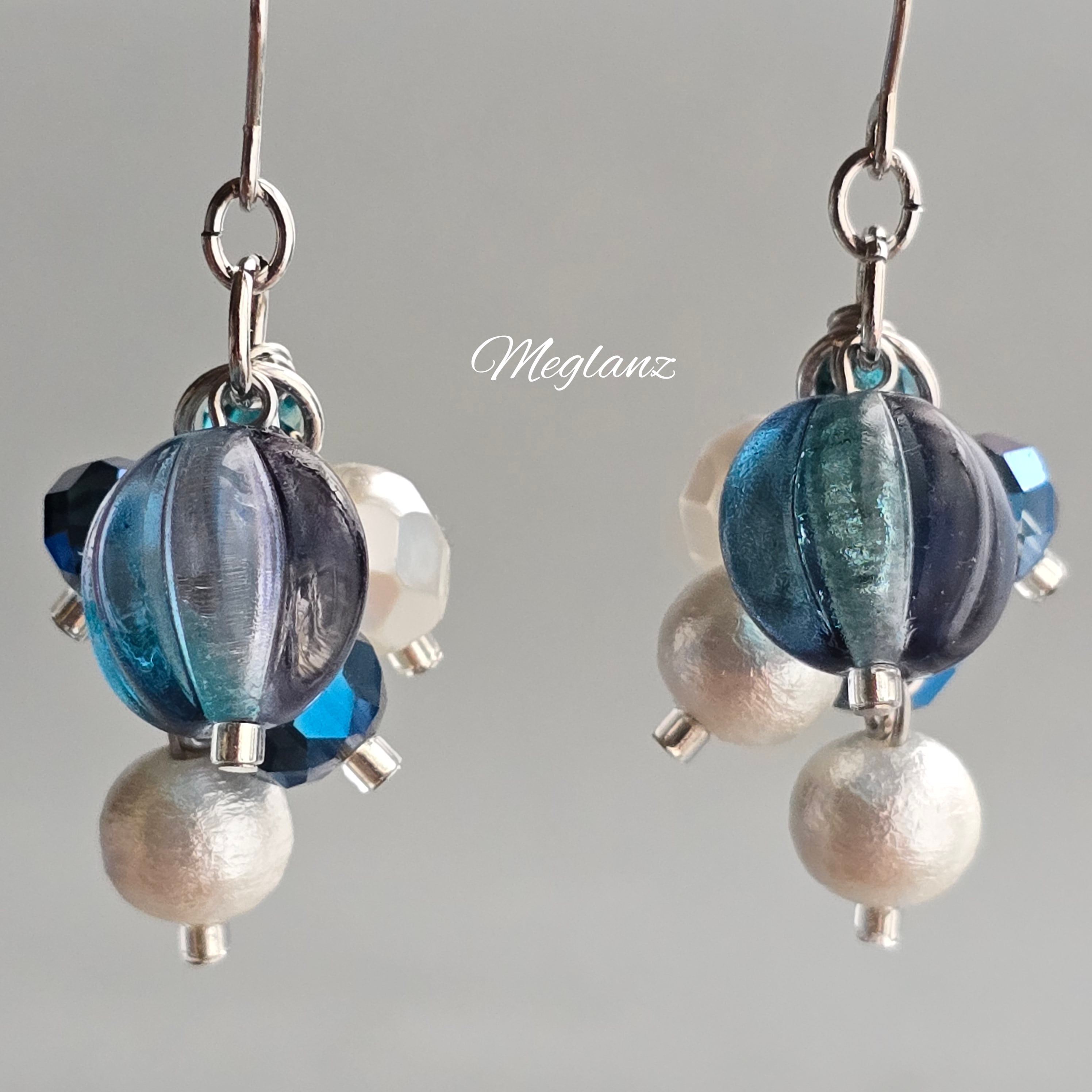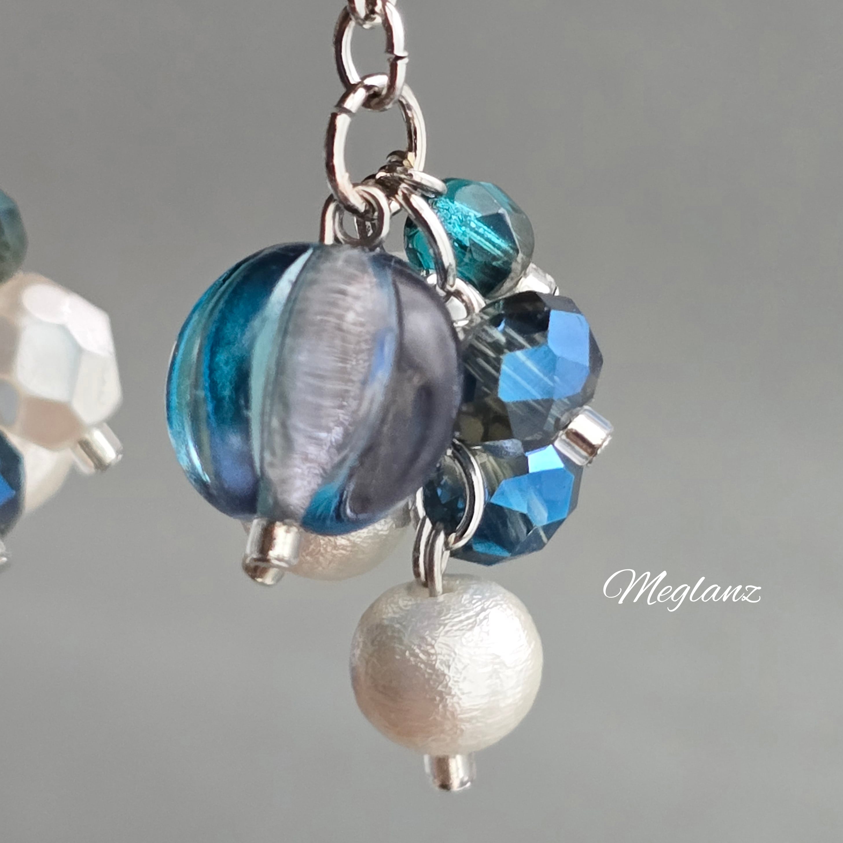 光のあたる角度でチェコビーズが繊細な色合いに変化し、耳元で小刻みに揺れるピアス。